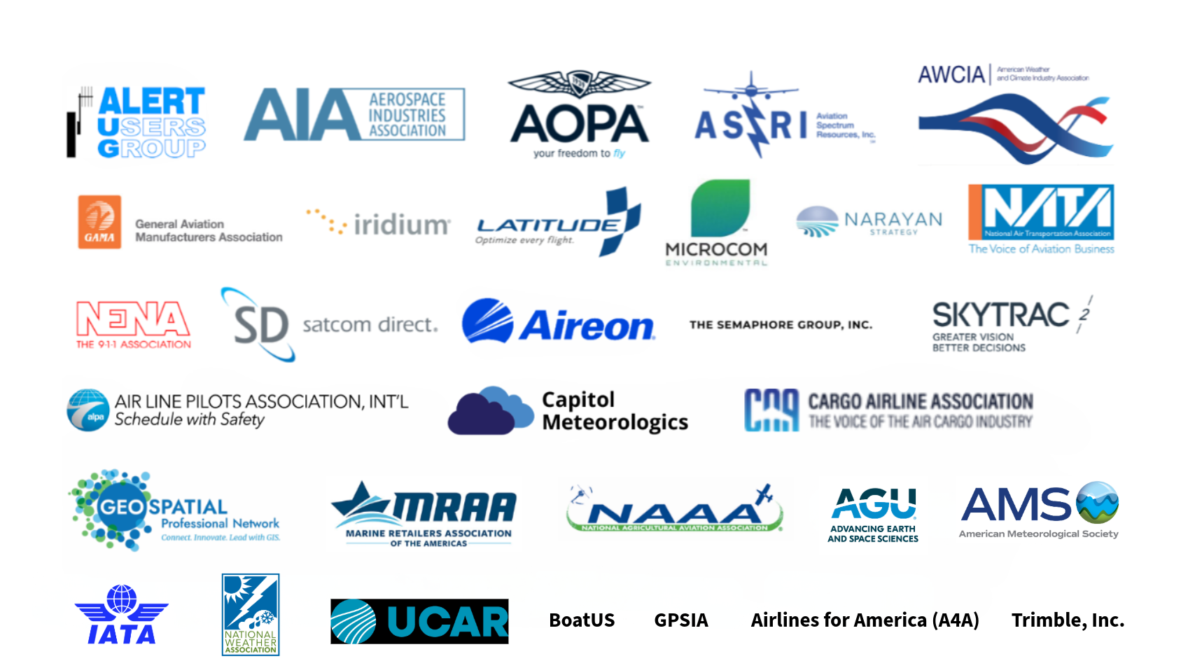 We are organizations and companies within the aviation and GPS industries, satellite communications industry, and weather/environmental data users, who all produce and rely on uninterrupted, reliable satellite communications. We are equally committed to protecting our satellite spectrum rights and ensuring the continued reliable availability of essential satellite services.